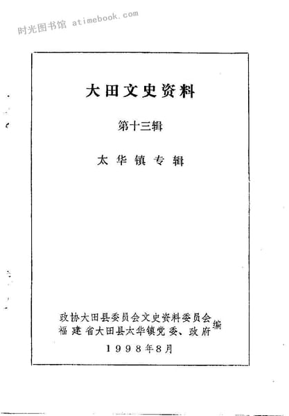 | 网盘路径:/时光图书馆珍藏系列/书籍文件/老图书/《大田文史资料_第13辑_太华镇专辑》电子版合集.db | ||