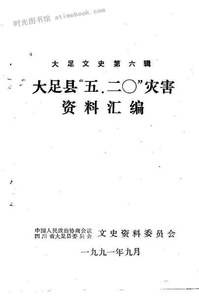| 网盘路径:/时光图书馆珍藏系列/书籍文件/老图书/《大足文史_第6辑_大足县“五.二○”灾害资料汇编》电子版合集.db | ||