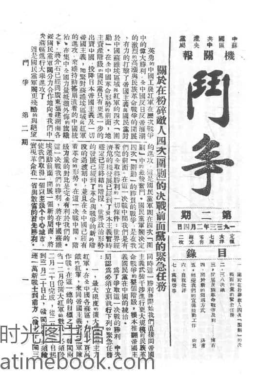 网盘路径:/时光图书馆珍藏系列/书籍文件/老杂志、老期刊/民国期刊/江西/《斗争》(江西瑞金)1933-1934年合集.db