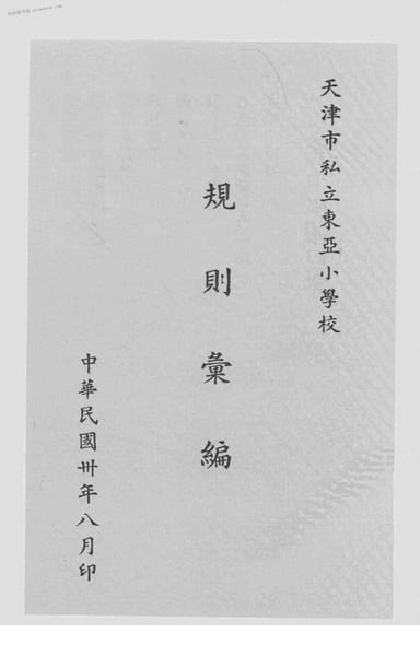 | 网盘路径:/时光图书馆珍藏系列/书籍文件/老图书/《天津市私立东亚小学校规则汇编》电子版合集.db | ||