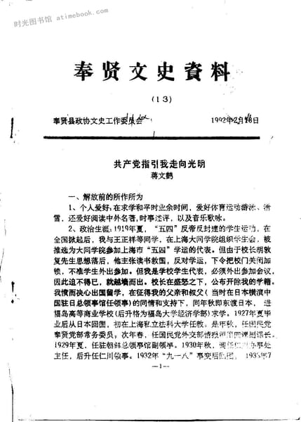 | 网盘路径:/时光图书馆珍藏系列/书籍文件/老图书/《奉贤文史资料(13)》电子版合集.db | ||