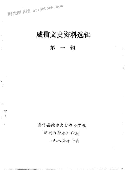 | 网盘路径:/时光图书馆珍藏系列/书籍文件/老图书/《威信文史资料选辑_第1辑》电子版合集.db | ||