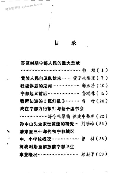 | 网盘路径:/时光图书馆珍藏系列/书籍文件/老图书/《宁都县文史资料_第1辑》电子版合集.db | ||