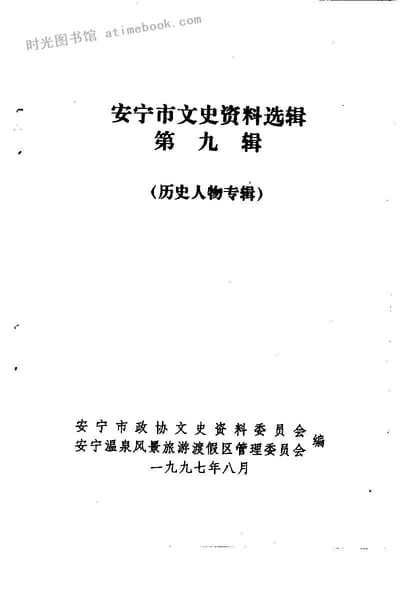 | 网盘路径:/时光图书馆珍藏系列/书籍文件/老图书/《安宁文史资料选辑_第9辑(历史人物专辑)》电子版合集.db | ||