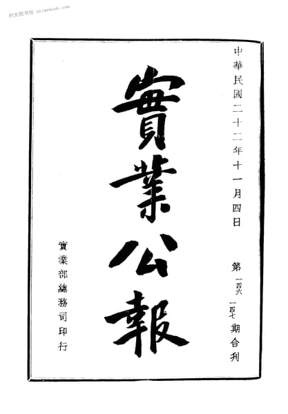 | 网盘路径:/时光图书馆珍藏系列/书籍文件/老图书/《实业公报一百四十六至一百五十二期(民国二十二十一月至十二月)》电子版合集.db | ||