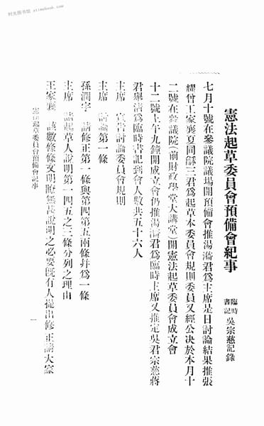 | 网盘路径:/时光图书馆珍藏系列/书籍文件/老图书/《宪法起草委员会会议录(一册)》电子版合集.db | ||
