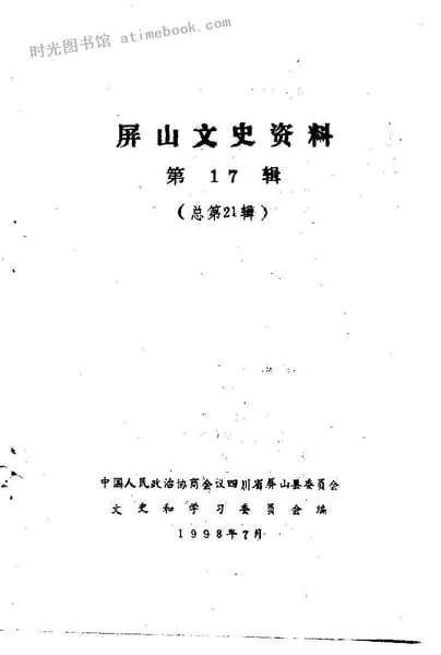 | 网盘路径:/时光图书馆珍藏系列/书籍文件/老图书/《屏山文史资料_第17辑》电子版合集.db | ||