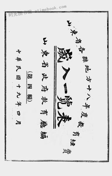 | 网盘路径:/时光图书馆珍藏系列/书籍文件/老图书/《山东省各县地方十八年度教育经费岁入一览表(第四编)》电子版合集.db | ||