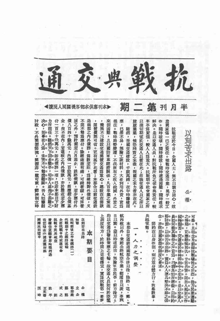 网盘路径:/时光图书馆珍藏系列/书籍文件/老杂志、老期刊/民国期刊/四川/《抗战与交通》(重庆)1938-1942年合集.db