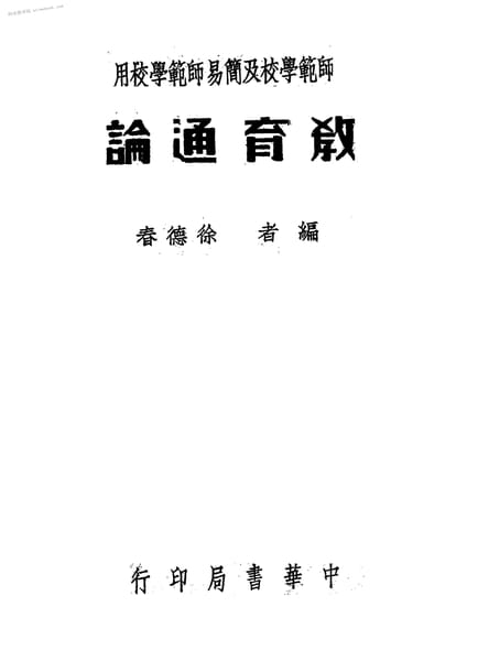 | 网盘路径:/时光图书馆珍藏系列/书籍文件/老图书/《师范学校及简易师范学校用_教育通论》电子版合集.db | ||