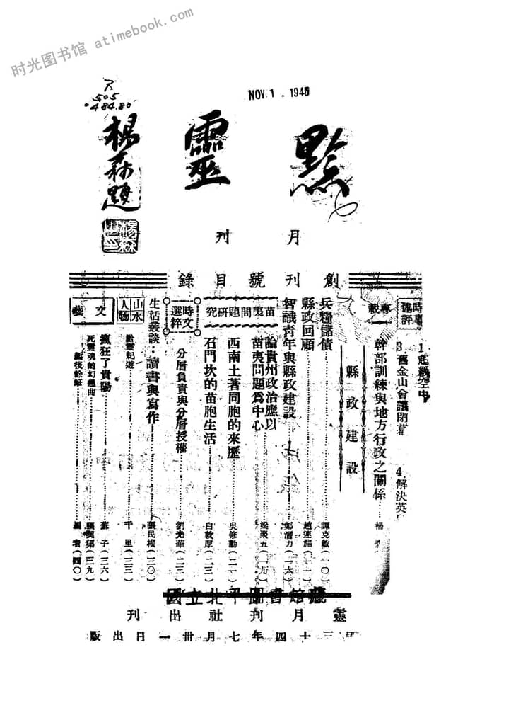 网盘路径:/时光图书馆珍藏系列/书籍文件/老杂志、老期刊/民国期刊/贵州/《黔灵》(贵阳)1945-1948年合集.db