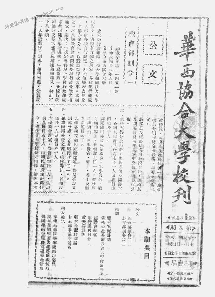 网盘路径:/时光图书馆珍藏系列/书籍文件/老杂志、老期刊/民国期刊/四川/《华西协合大学校刊》(成都)1939-1946年合集.db