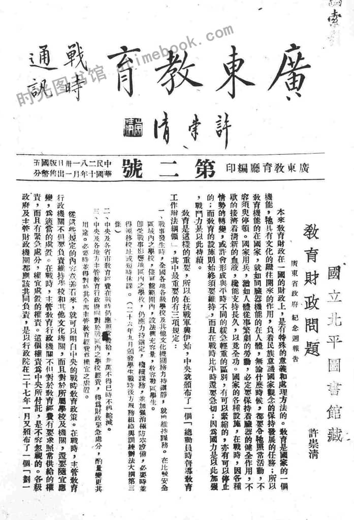 网盘路径:/时光图书馆珍藏系列/书籍文件/老杂志、老期刊/民国期刊/广东/《广东教育战时通讯》1939-1943年合集.db