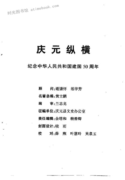 | 网盘路径:/时光图书馆珍藏系列/书籍文件/老图书/《庆元纵横_第17期_纪念中华人民共和国建国50周年》电子版合集.db | ||