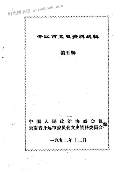 | 网盘路径:/时光图书馆珍藏系列/书籍文件/老图书/《开远市文史资料选辑_第5辑》电子版合集.db | ||