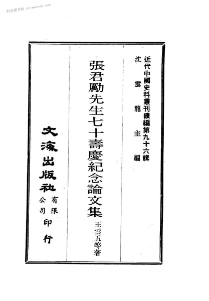 | 网盘路径:/时光图书馆珍藏系列/书籍文件/老图书/《张君励先生七十寿庆纪念论文集》电子版合集.db | ||