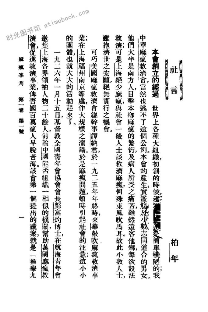 书籍名称:《麻风季刊》(上海)1927-1939年合集