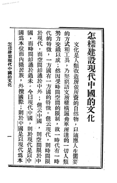 | 网盘路径:/时光图书馆珍藏系列/书籍文件/老图书/《怎样建设现代中国的文化》电子版合集.db | ||