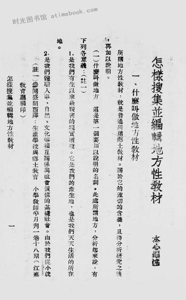 | 网盘路径:/时光图书馆珍藏系列/书籍文件/老图书/《怎样搜集并编辑地方性教材》电子版合集.db | ||