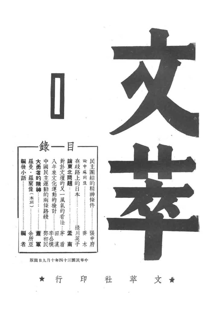 网盘路径:/时光图书馆珍藏系列/书籍文件/老杂志、老期刊/民国期刊/上海/《文萃(文萃丛刊)》(上海)1945-1947年合集.db