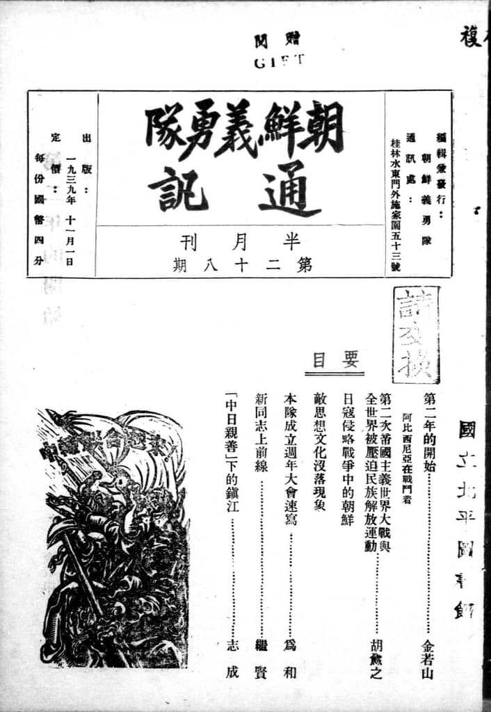 书籍名称:《朝鲜义勇队通讯》(桂林)1039-1942年合集