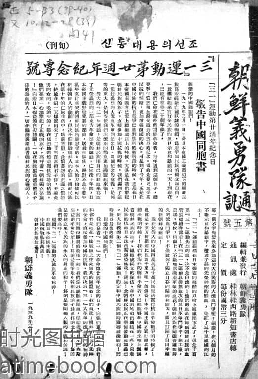 网盘路径:/时光图书馆珍藏系列/书籍文件/老杂志、老期刊/民国期刊/广西/《朝鲜义勇队通讯》(桂林)1039-1942年合集.db