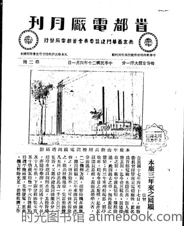 网盘路径:/时光图书馆珍藏系列/书籍文件/老杂志、老期刊/民国期刊/南京/《首都电厂月刊》(南京)1931-1937年合集.db