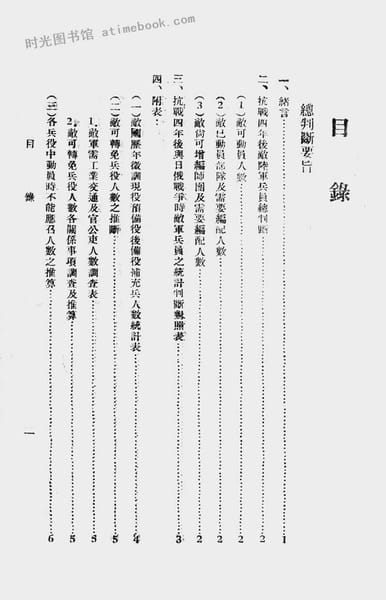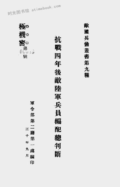 | 网盘路径:/时光图书馆珍藏系列/书籍文件/老图书/《抗战四年后敌陆军兵员编配总判断》电子版合集.db | ||