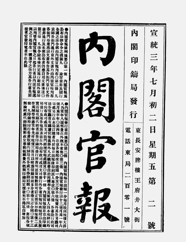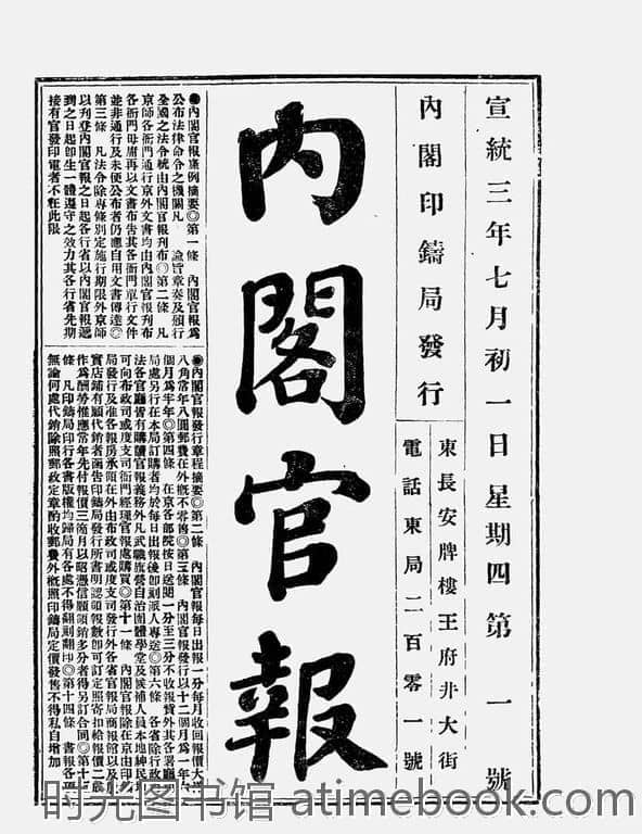 书籍名称:《内阁官报》(北京)1911-1911年合集