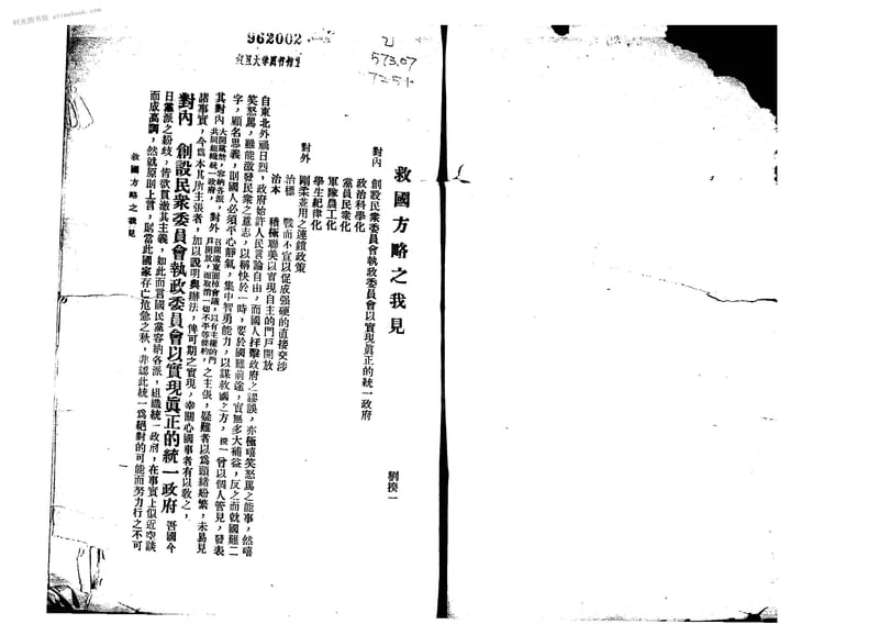| 关键词:救国方法,对内,对外,政治科学化,*员民众化, | ||