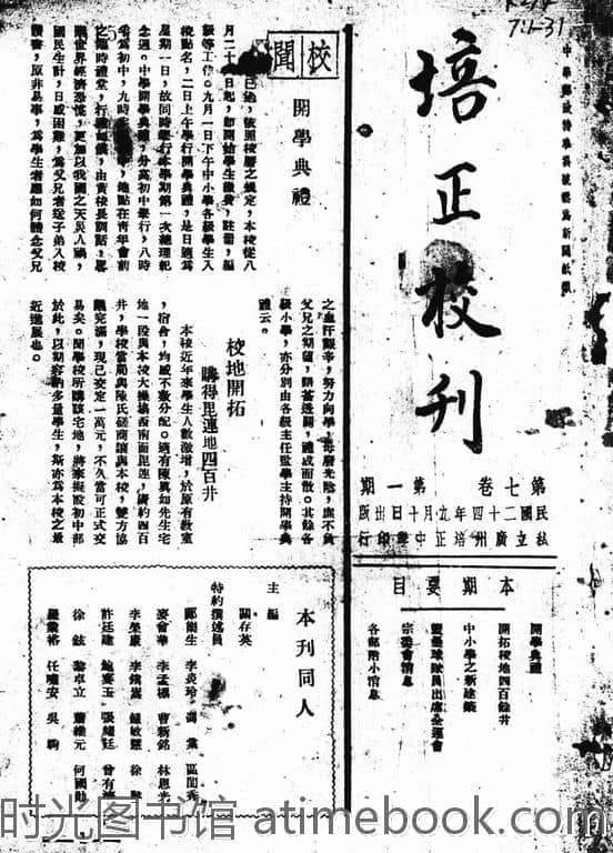 网盘路径:/时光图书馆珍藏系列/书籍文件/老杂志、老期刊/民国期刊/广东/《培正校刊》(广州)1935-1949年合集.db