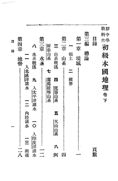 | 网盘路径:/时光图书馆珍藏系列/书籍文件/老图书/《教育部审定新中学教科书_初级本国地理__下册》电子版合集.db | ||