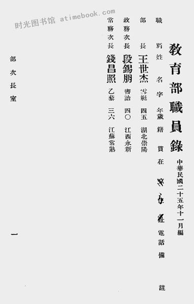 | 网盘路径:/时光图书馆珍藏系列/书籍文件/老图书/《教育部职员录(民国廿五年)》电子版合集.db | ||