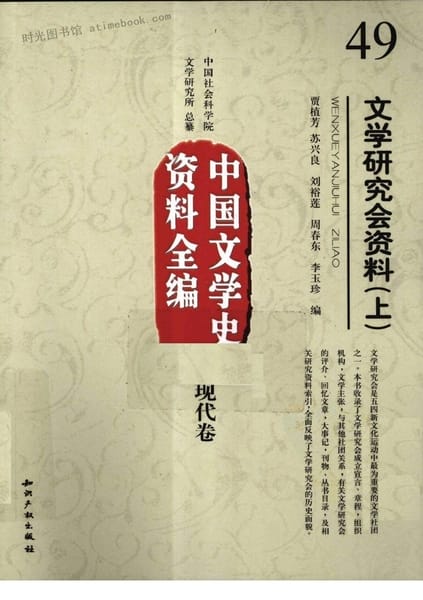 | 网盘路径:/时光图书馆珍藏系列/书籍文件/老图书/《文学研究会资料_下_中国文学史资料全编_现代卷》电子版合集.db | ||