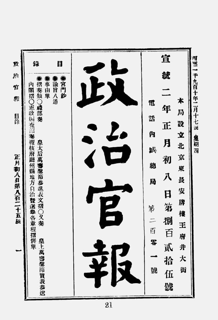 书籍名称:《政治官报》(北京)1910-1911年合集
