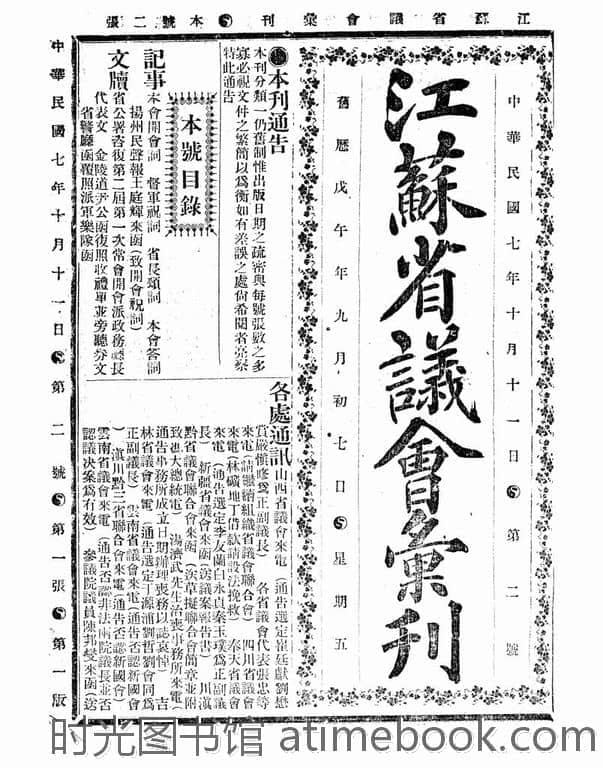 网盘路径:/时光图书馆珍藏系列/书籍文件/老杂志、老期刊/民国期刊/江苏/《江苏省议会汇刊》(镇江)1918-1918年合集.db