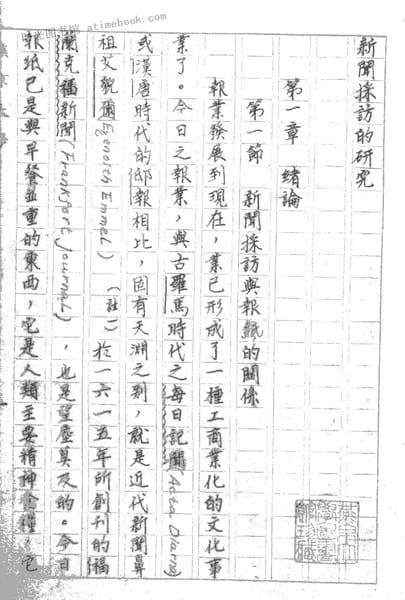 | 网盘路径:/时光图书馆珍藏系列/书籍文件/老图书/《新闻采访的研究》电子版合集.db | ||
