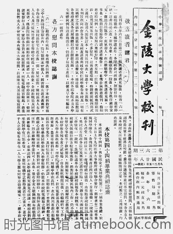 网盘路径:/时光图书馆珍藏系列/书籍文件/老杂志、老期刊/《金陵大学校刊》1939-1946年合集.db