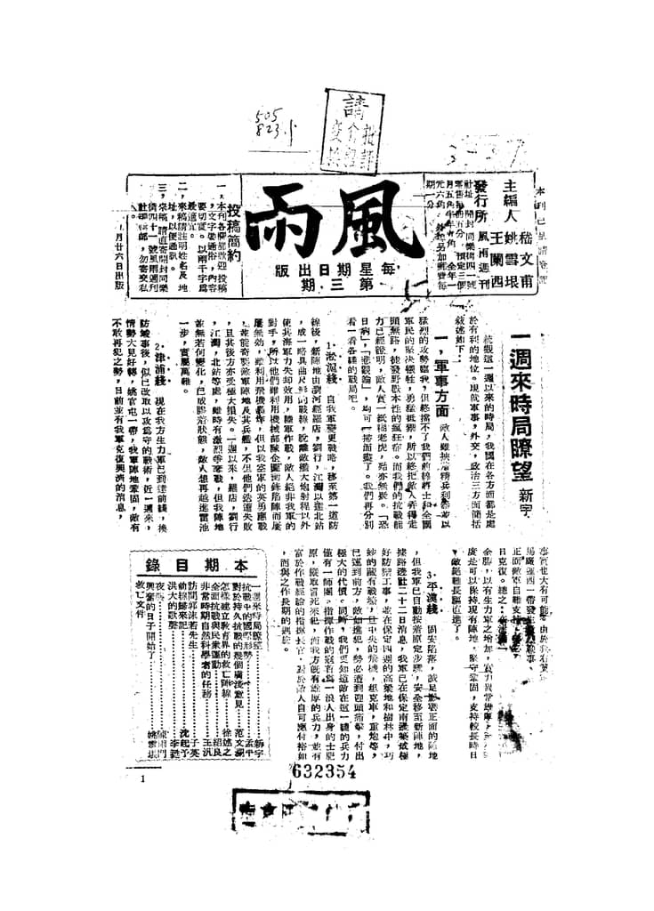 书籍名称:《风雨》(开封)1937-1938年合集
