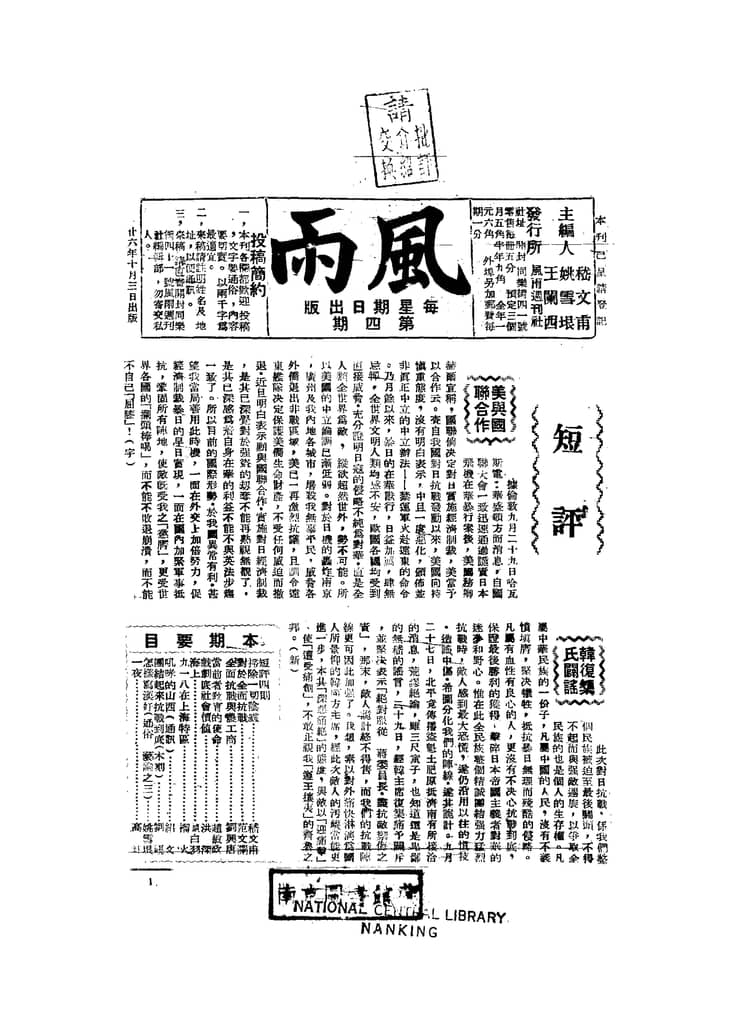 网盘路径:/时光图书馆珍藏系列/书籍文件/老杂志、老期刊/民国期刊/河南/《风雨》(河南开封)1937-1938年合集.db