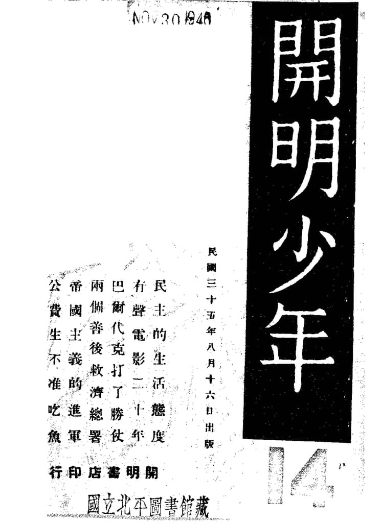 网盘路径:/时光图书馆珍藏系列/书籍文件/老杂志、老期刊/民国期刊/四川/《开明少年》(重庆)1936-1951年合集.db