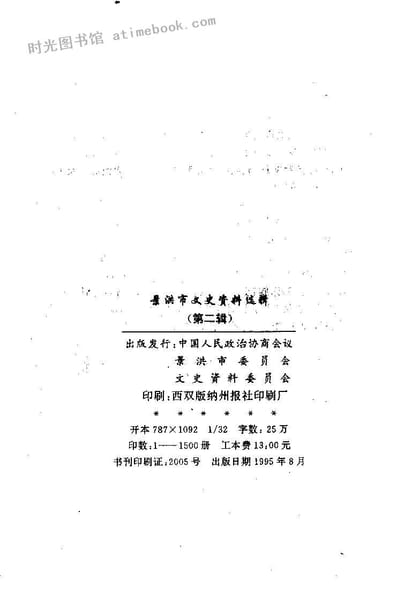 | 网盘路径:/时光图书馆珍藏系列/书籍文件/老图书/《景洪市文史资料选辑_第2辑》电子版合集.db | ||
