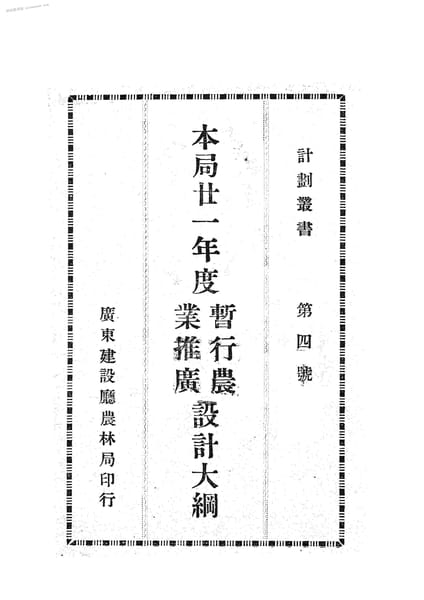 | 网盘路径:/时光图书馆珍藏系列/书籍文件/老图书/《本局廿一年度暂行农业推广设计大纲》电子版合集.db | ||