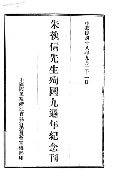 | 网盘路径:/时光图书馆珍藏系列/书籍文件/老图书/《朱执信先生殉国九周年纪念刊》电子版合集.db | ||