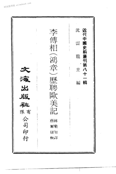| 网盘路径:/时光图书馆珍藏系列/书籍文件/老图书/《李傅相(鸿章)历聘欧美记》电子版合集.db | ||