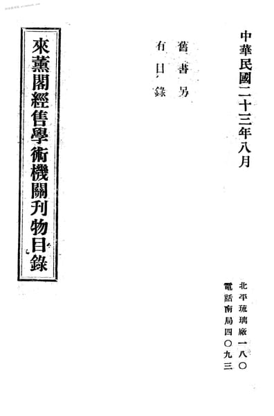 | 网盘路径:/时光图书馆珍藏系列/书籍文件/老图书/《来薰阁经售学术机关刊物目录》电子版合集.db | ||