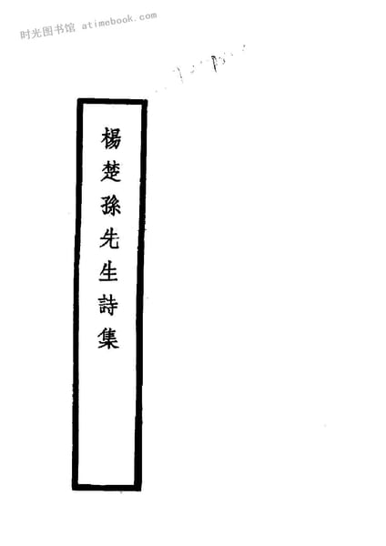 | 网盘路径:/时光图书馆珍藏系列/书籍文件/老图书/《杨楚孙先生诗集》电子版合集.db | ||