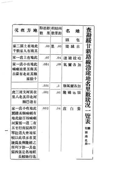 文件下载 | 名称:《查勘绥甘新路线沿途地名里数状况一览表》电子版合集 | |