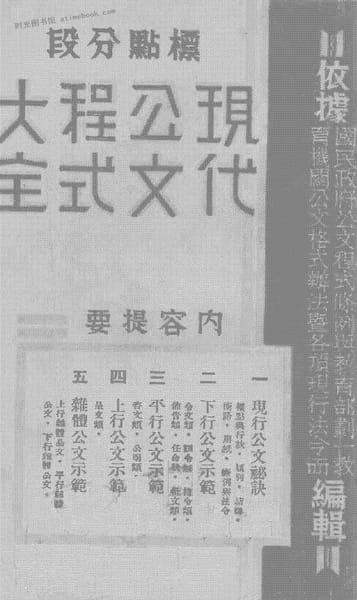 | 网盘路径:/时光图书馆珍藏系列/书籍文件/老图书/《标点分段:现代公文程式大全》电子版合集.db | ||
