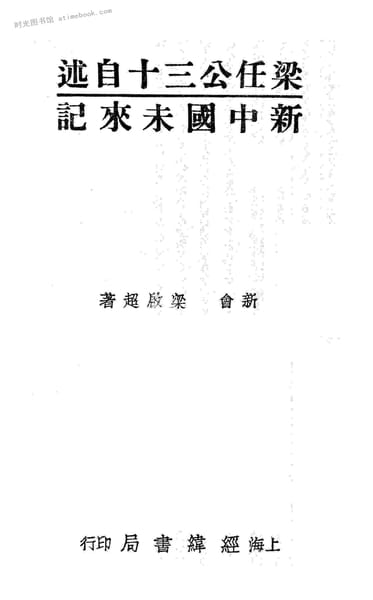 | 网盘路径:/时光图书馆珍藏系列/书籍文件/老图书/《梁任公三十自述新中国未来记》电子版合集.db | ||